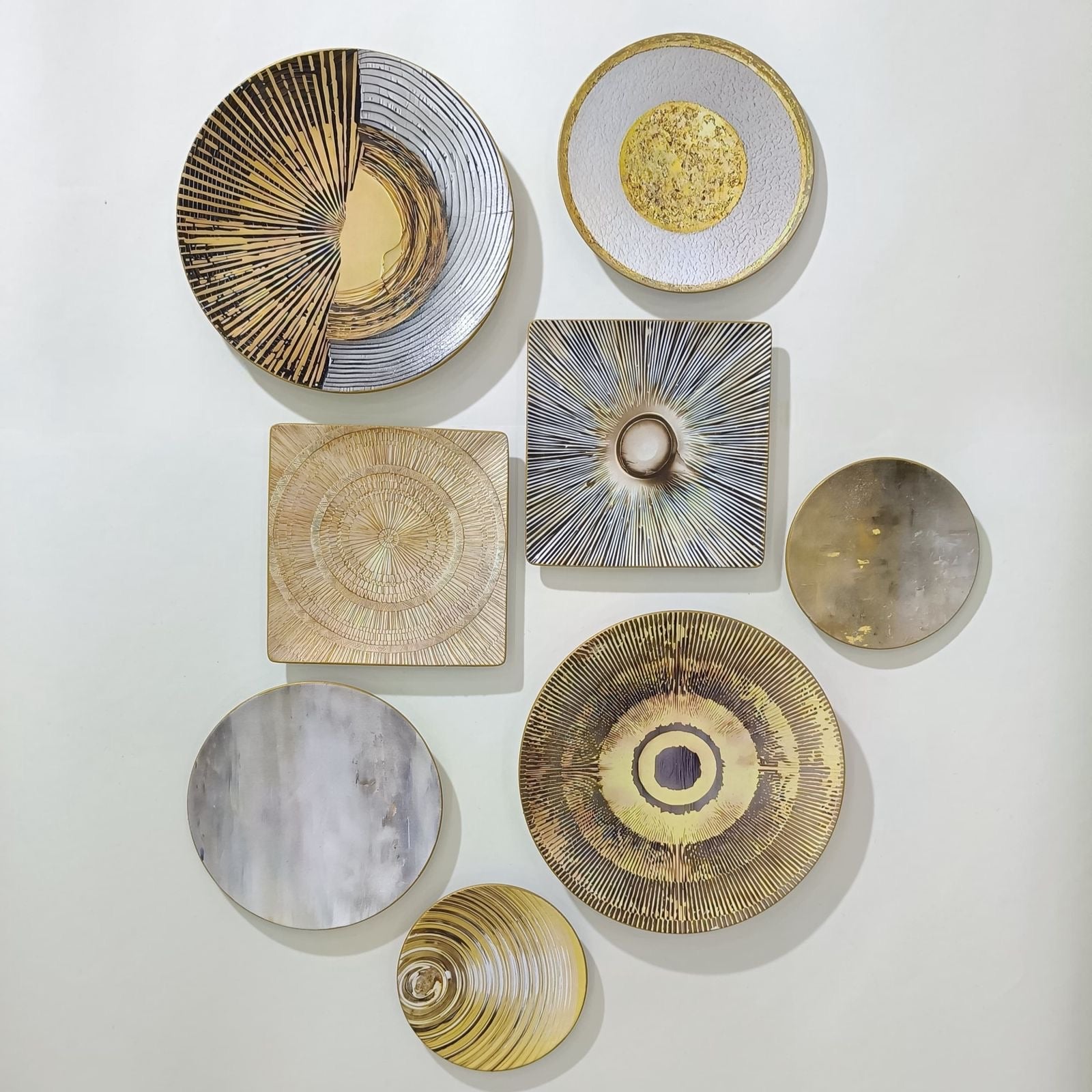 A refined wall plate set blending soft beige, gentle grey, and touches of gold in graceful patterns. This set adds calm beauty and quiet elegance to any space — perfect for those who love classic, timeless decor.