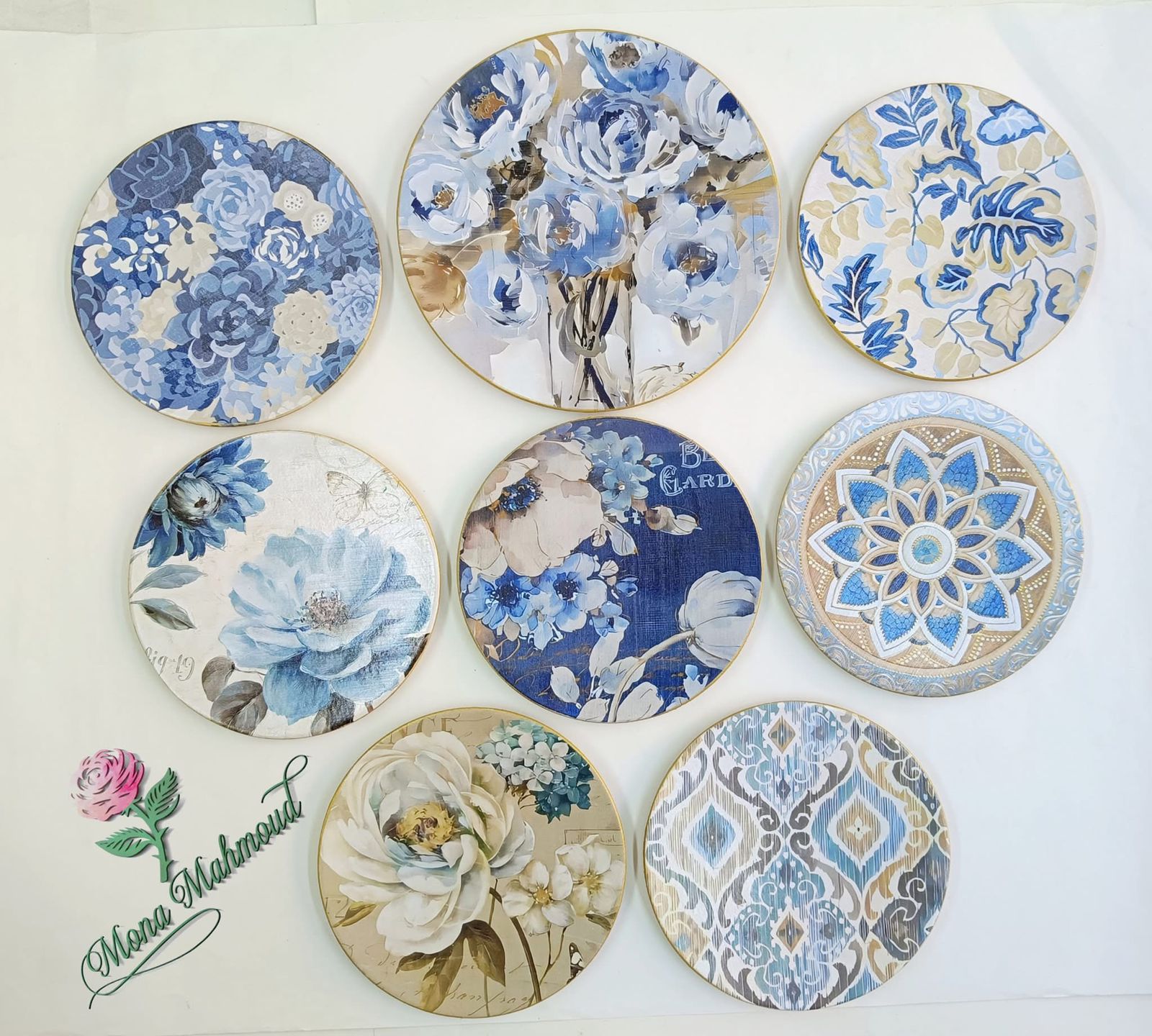 A charming set featuring hand-drawn flowers and mandalas in soft blue and beige tones. This artistic collection adds a gentle, creative touch to your home décor, perfect for a calm and inviting atmosphere.